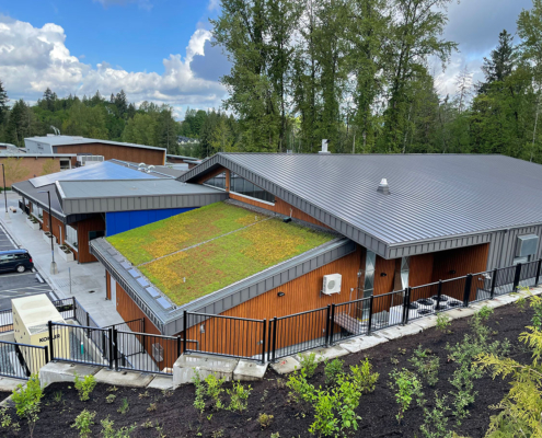One of Burnaby’s newest firehalls (#8) is located near Simon Fraser University (SFU) and was completed in 2024. This beautifully designed 15,000-square-foot structure stands as a leading example of the City’s Climate Action Plan, which focuses on sustainable and energy-efficient buildings.